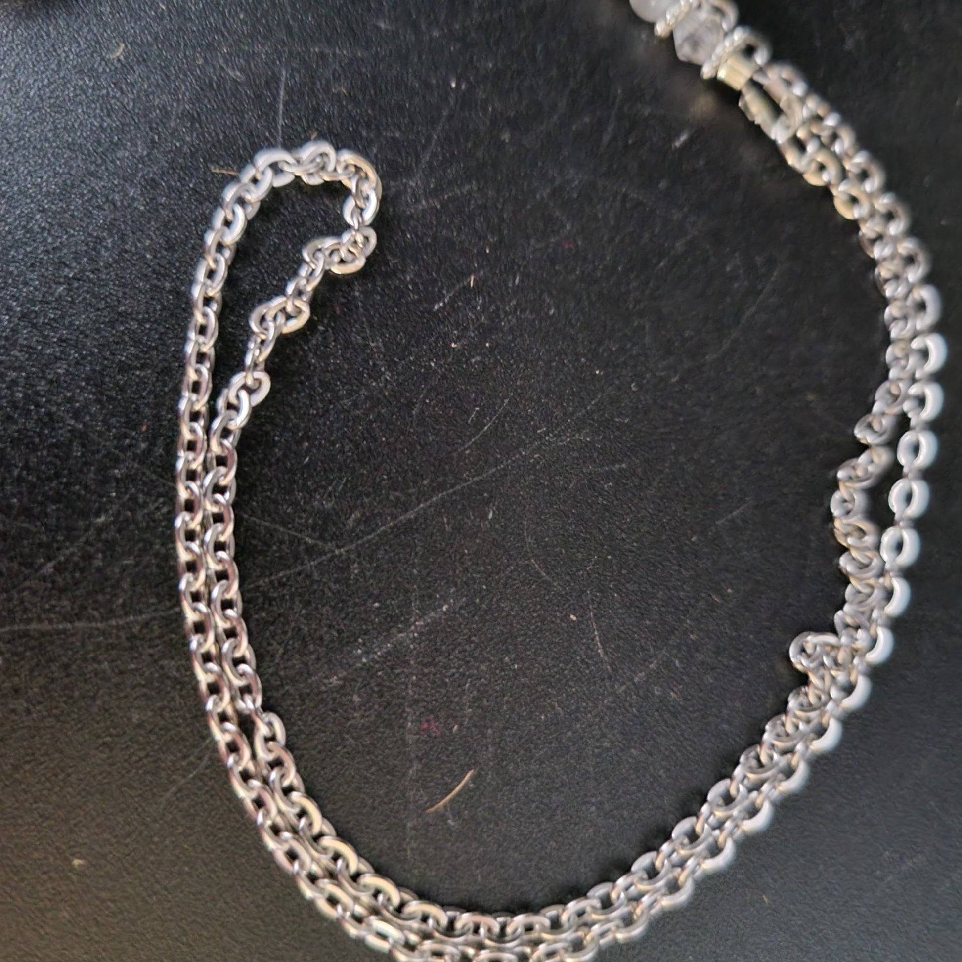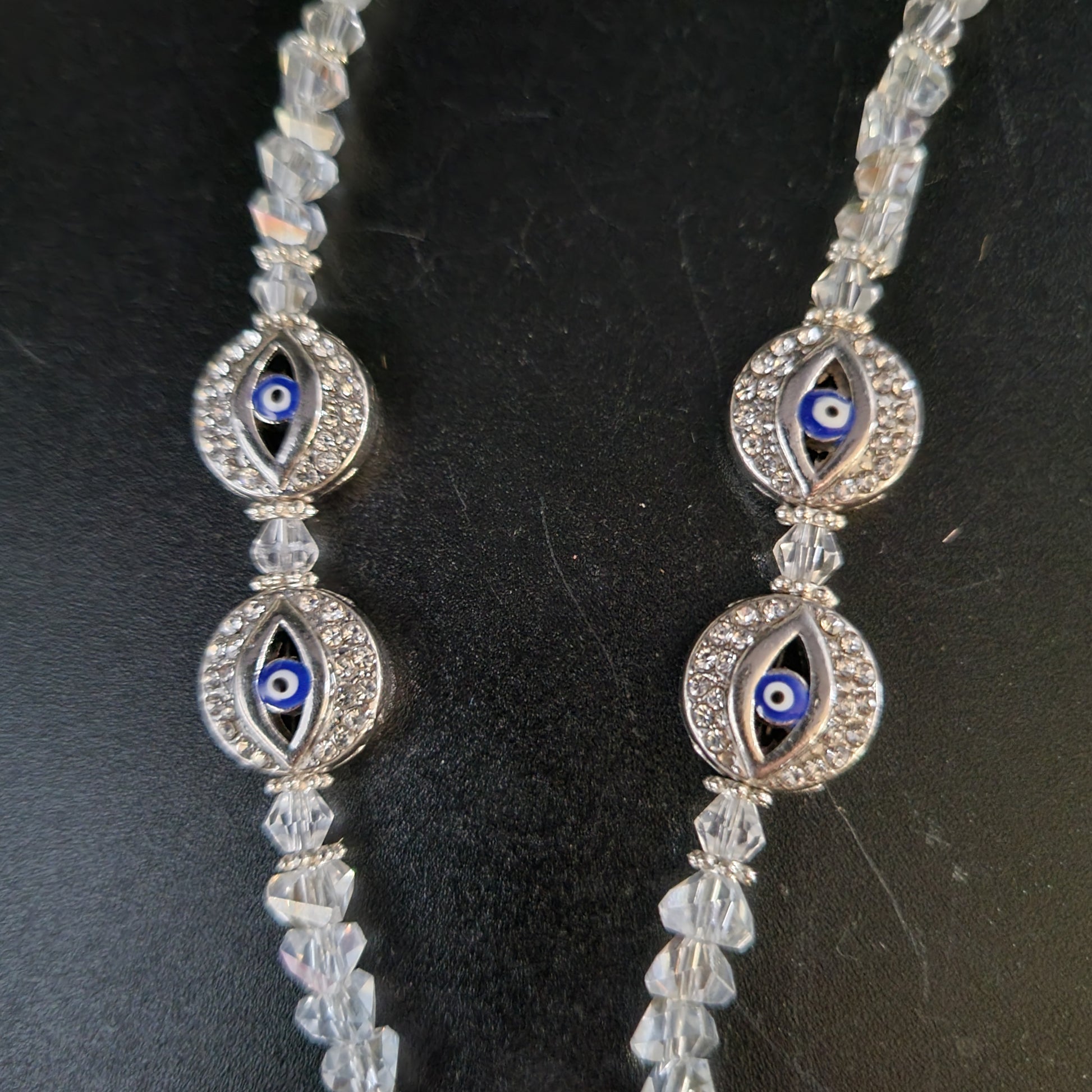 Item: 20' Clear crystal, Selenite, with the protection of the evil eye essential oil bottle necklace