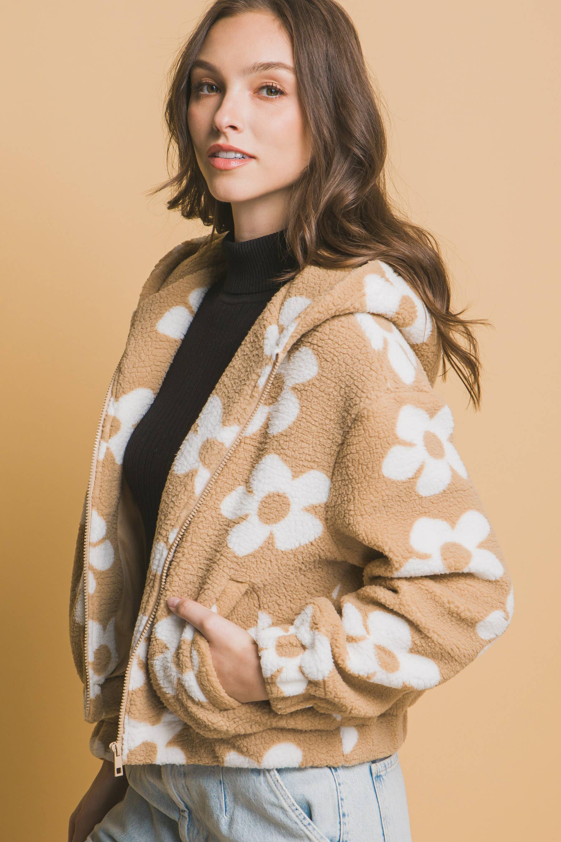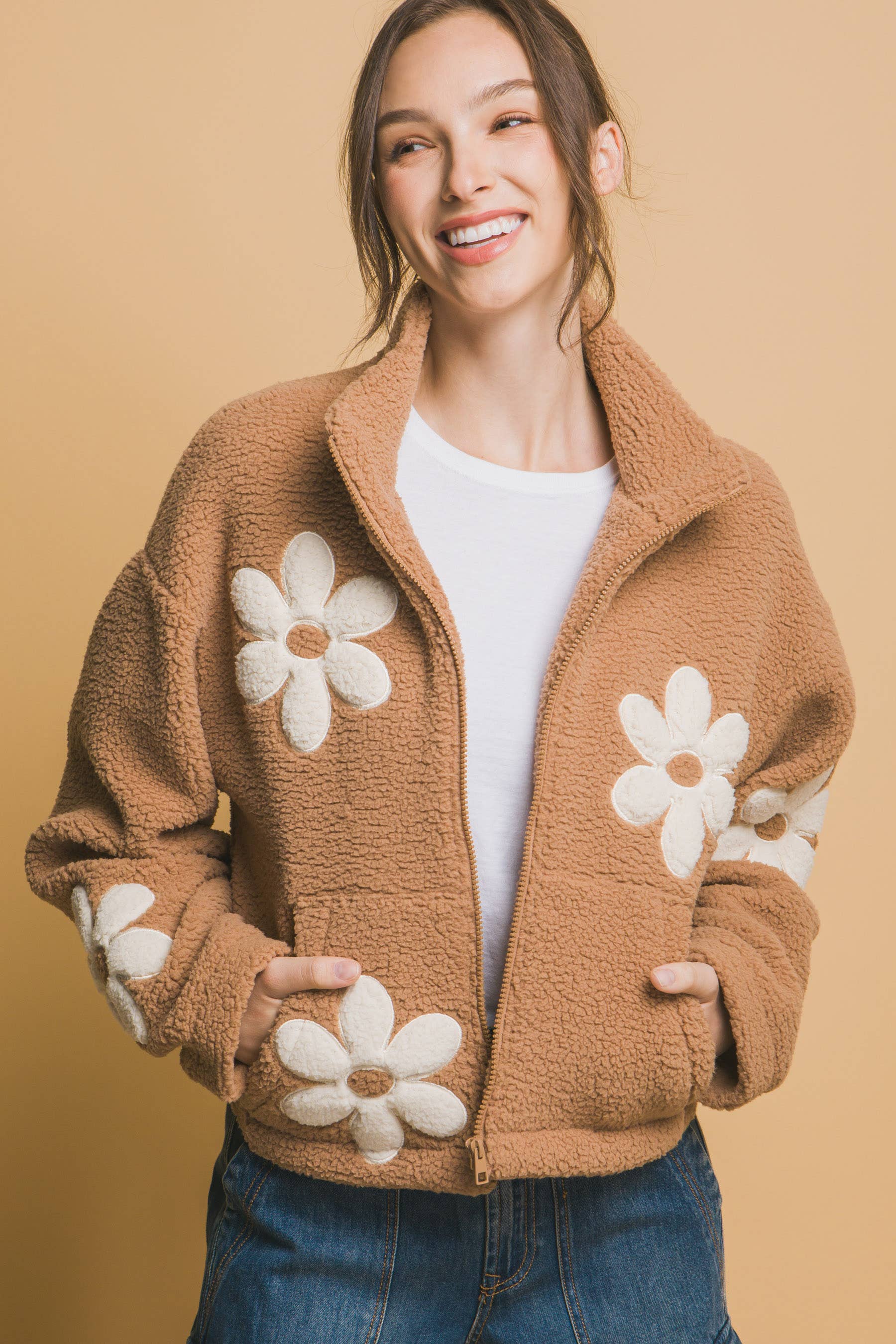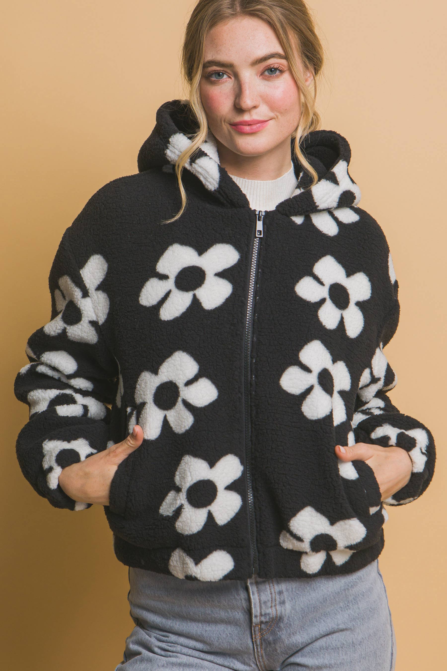 SI-15475 Faux Fur Zipper Front Jacket With Side Pockets (100% POLYESTER)