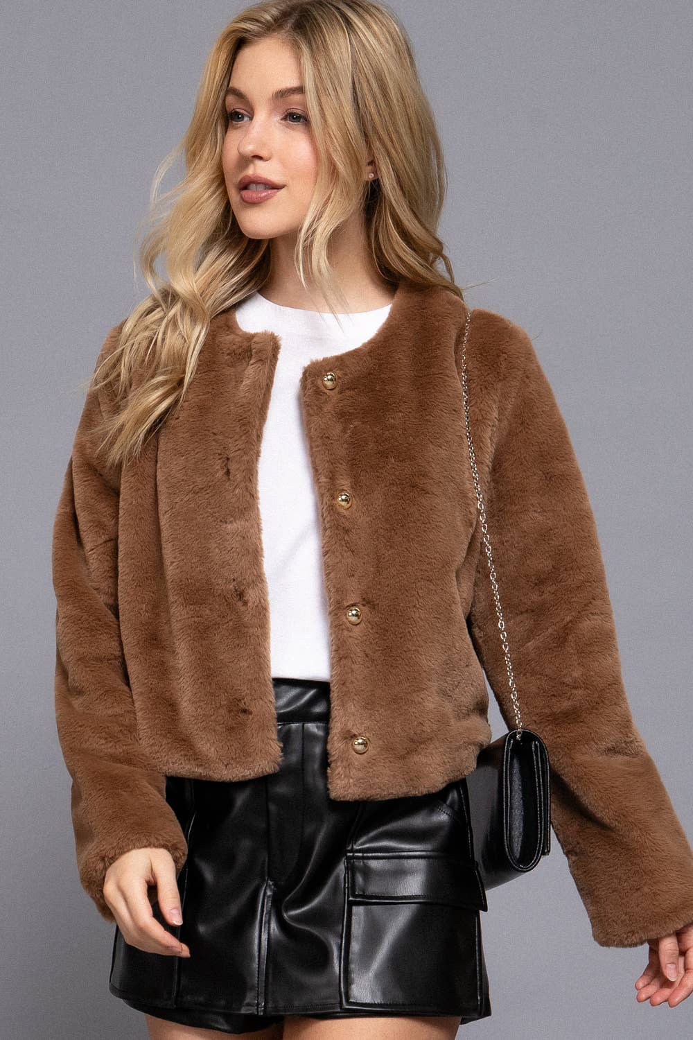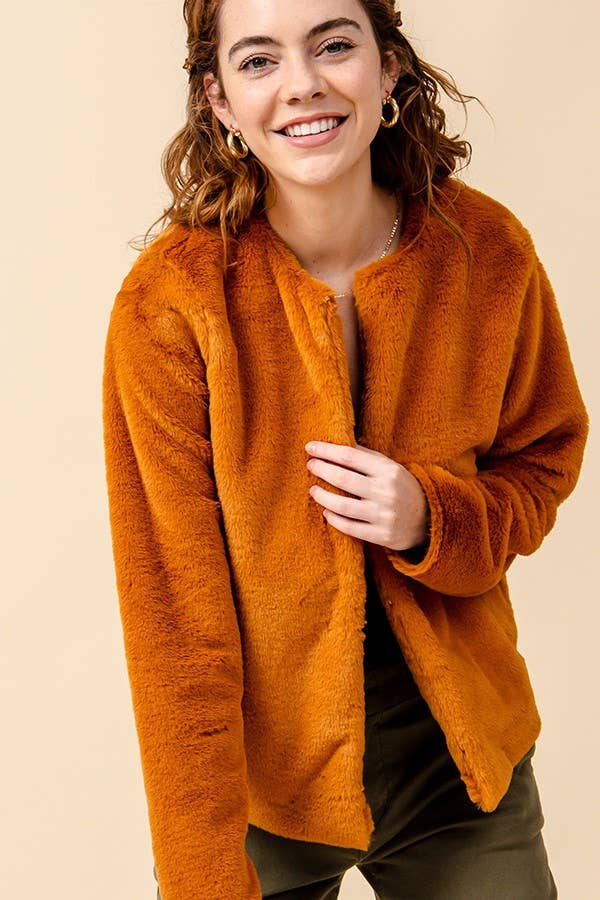 SI-28354 Long Slv Faux Fur Crop Length Jacket (100% POLYESTER)